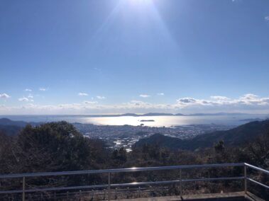 桑谷山展望台は風が強くて寒い!!強風を避け展望台の下で山飯を楽しむ家族が2組。景色が良くて毎週、登っても飽きない山です^ ^
