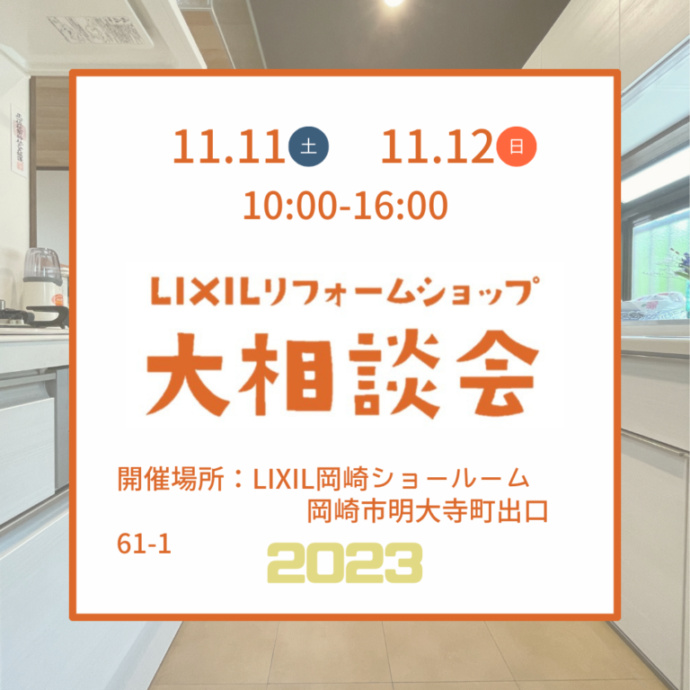 こんにちは! 11月11日(土)・12日(日)はLIXIL岡崎ショールームで ≪リフォー…