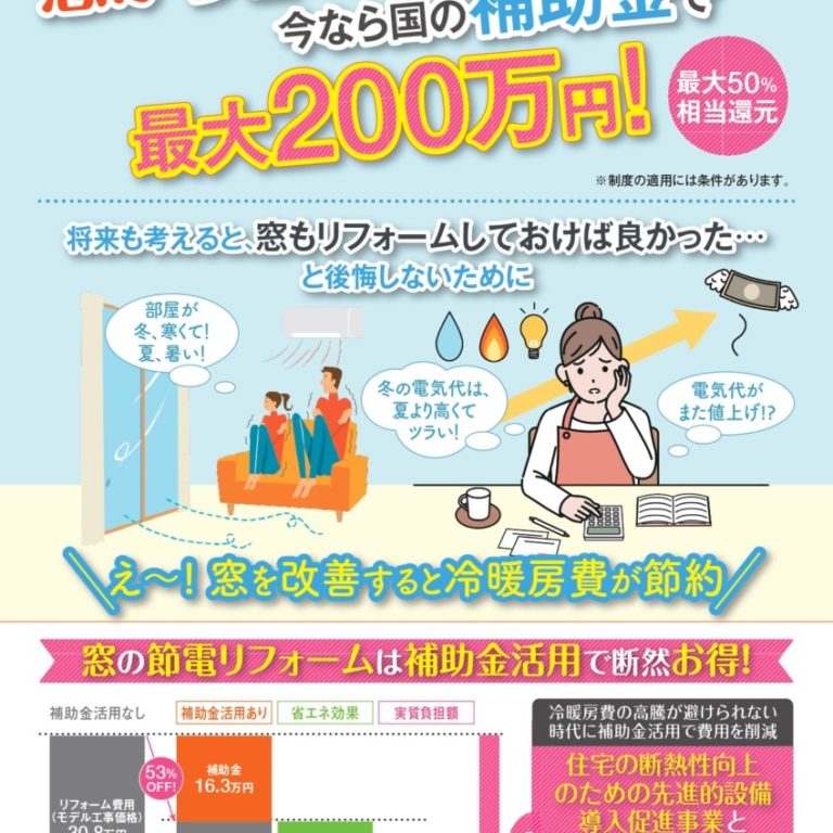 このたび開口部リフォーム(高断熱窓)への大型補助金が閣議決定されました! 予算額は1,0…