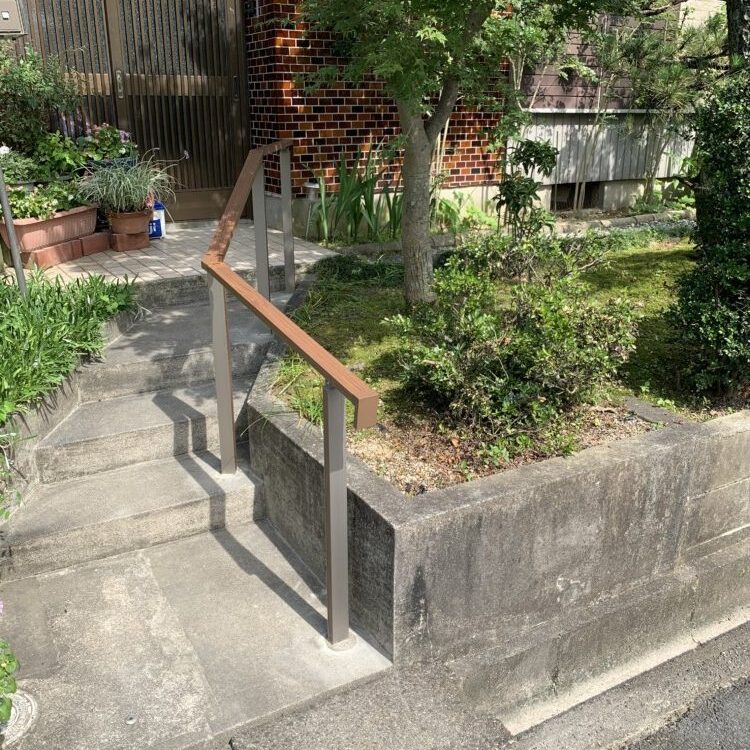 リフォーム内容・詳細など 来客時に階段に手すりがないと危ないからと、アプローチの階段に手…