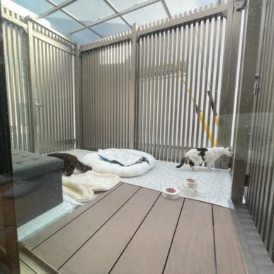愛猫が7匹いらっしゃるお施主様から、猫ちゃんたちが外の空気や日の光を楽しめるようなテラスにしたいとのご要望をいただきました。