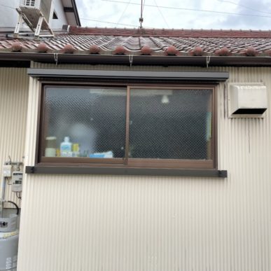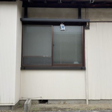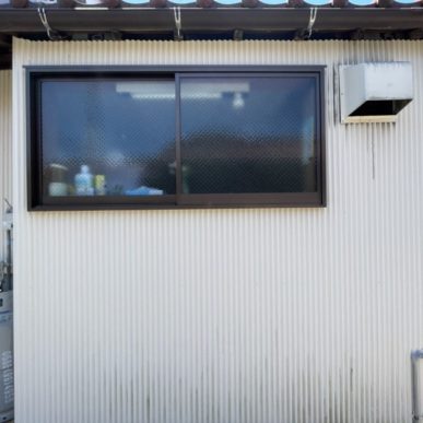 波板の外壁でしたので、下地に設置することが難く、四角パイプを下地として施工してから取付けしています。