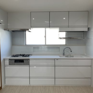 白いキッチンになったことで窓から差し込む光を反射し、日中は照明をつけなくても明るい空間に。