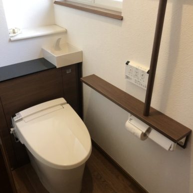 トイレをすっきり見せたいとのご要望からキャビネット付きトイレを設置いたしました。