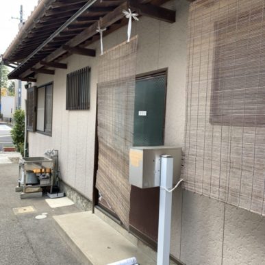 いままではすだれを軒先に吊るしていましたが、「取り付けるのも片付けるのも大変で手軽にできるものにしたい」とのことから、スタイルシェードをお勧めさせていただきました。