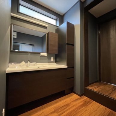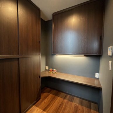 お施主様のこだわった内装やホテルライクな洗面化粧室、奥様の家事&趣味コーナーなど限られた空間を最大限利用し、ご夫婦の新居が完成!