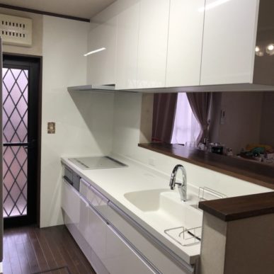 キッチンにはタッチレス水栓を採用し、手が汚れていてもどこも汚さずに水を出すことができて毎日の家事のストレス軽減に!