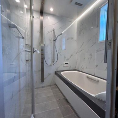 ショールームでご覧いただいた浴室タイルを気に入っていただき、リゾートホテルのような雰囲気の浴室に。