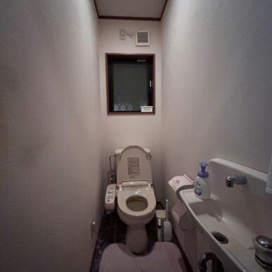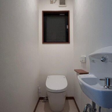 トイレはタンクレストイレを採用してお部屋がすっきりと広く見えるように◎ふちレスでササっとお手入れできてキレイな状態を維持しやすいです。