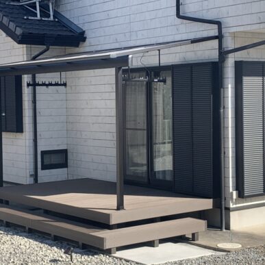 土台が固まったらデッキとテラス屋根を組み立てて完成です!