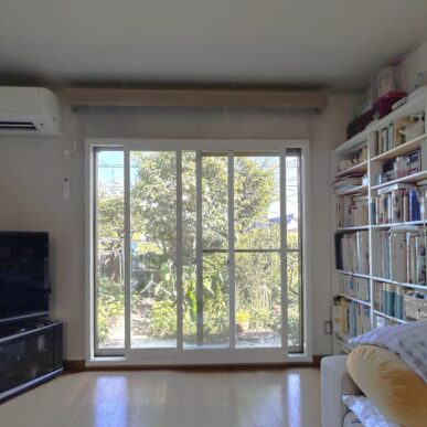 出入りの多い掃き出し窓だけはカバー工法のリプラスを設置し、他の窓はインプラスで二重窓を施工させていただきました。